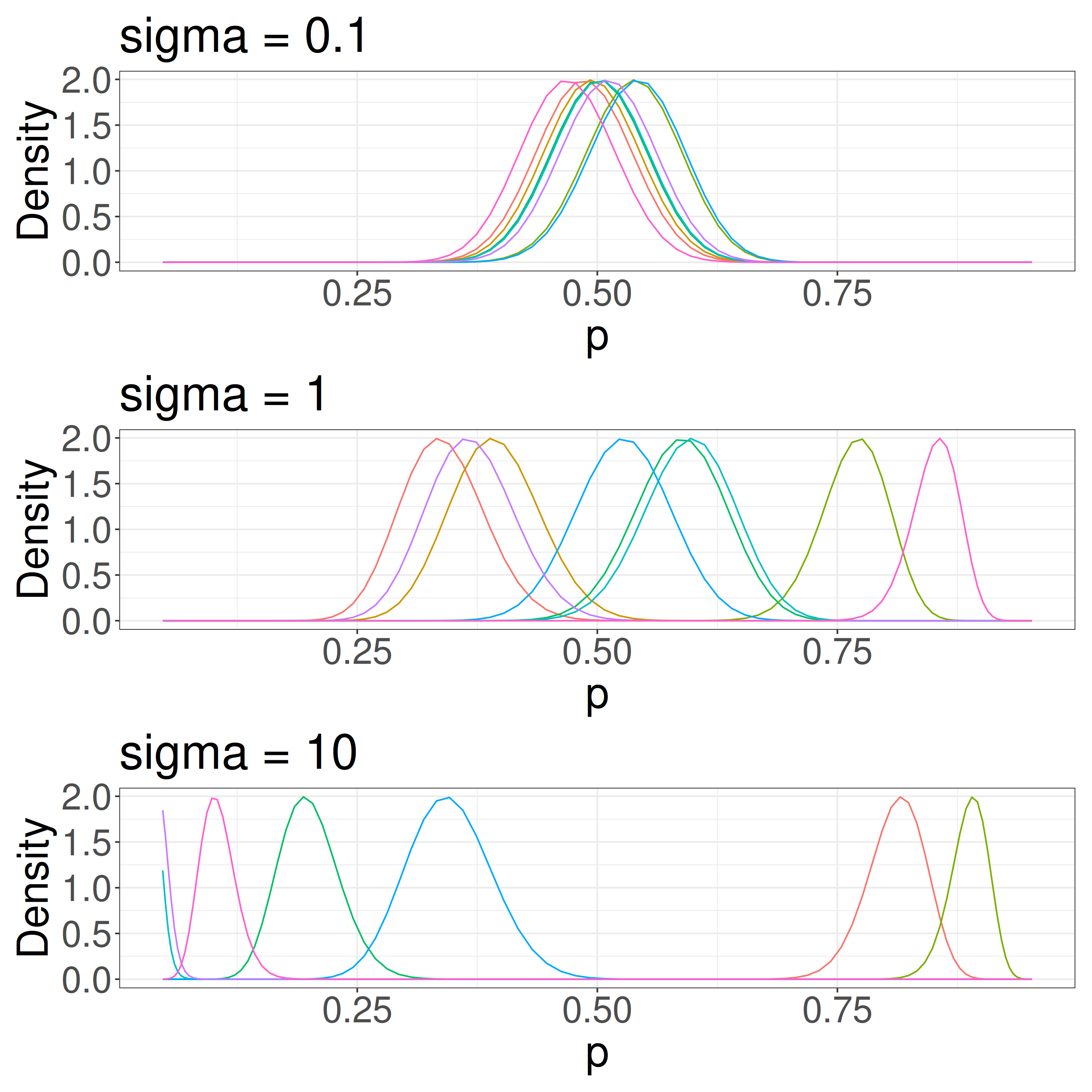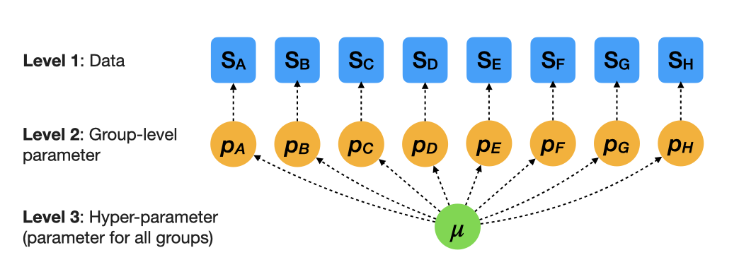 \(\mathrm{logit}(p_i) \sim \mathcal{N}(\mu, \sigma)\): Group-level model (hierarchical prior)