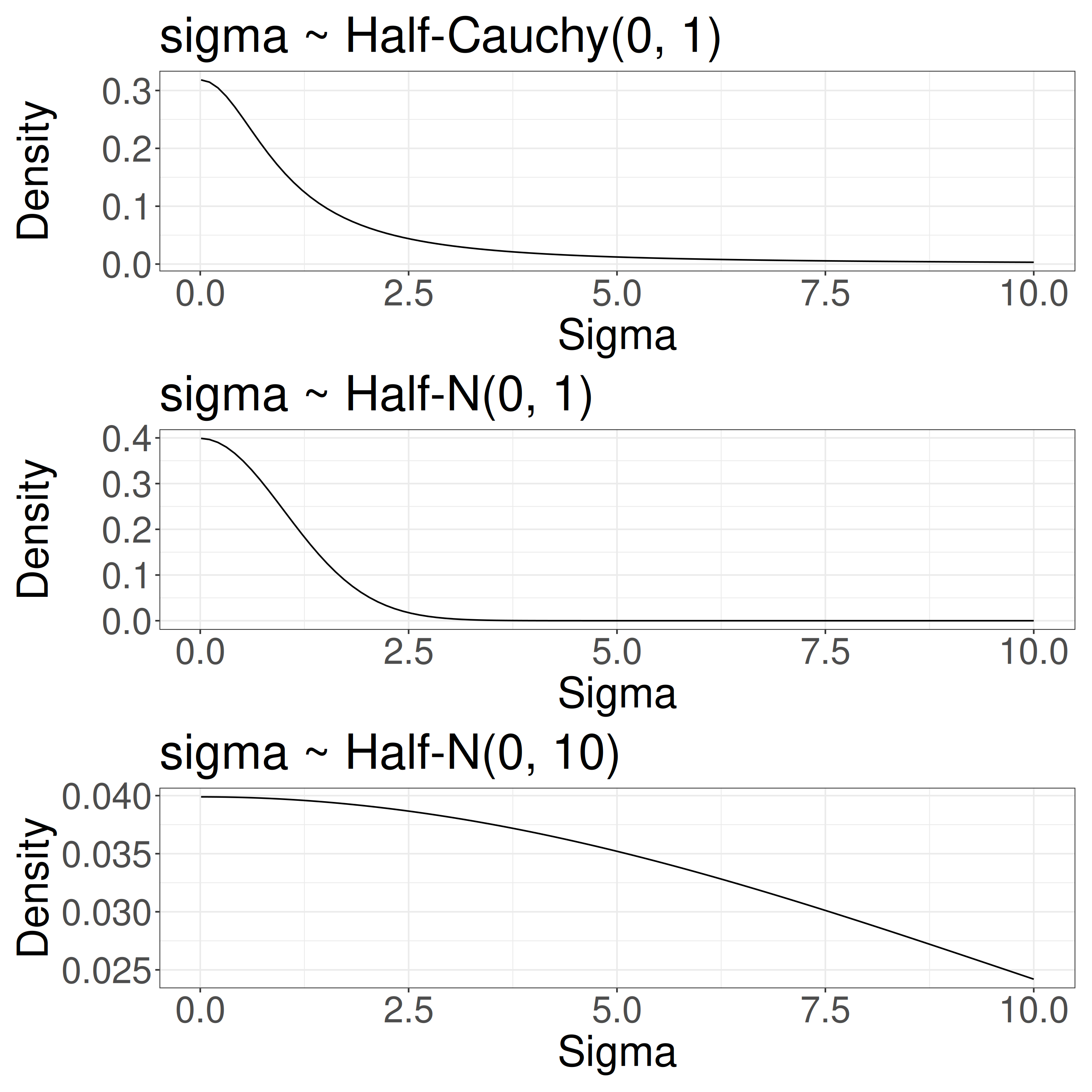 \(\sigma \sim \text{Half-Cauchy}(0, 1)\): Hyperprior