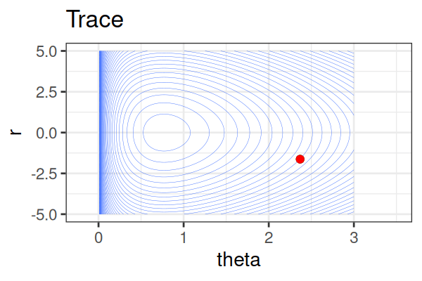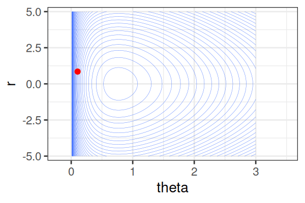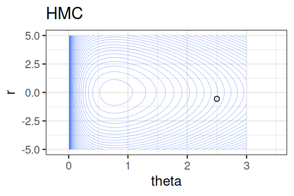 Instead of sampling from \(p(\theta \mid \text{data})\), HMC samples from a joint distribution over both \(\theta\) and \(r\).
