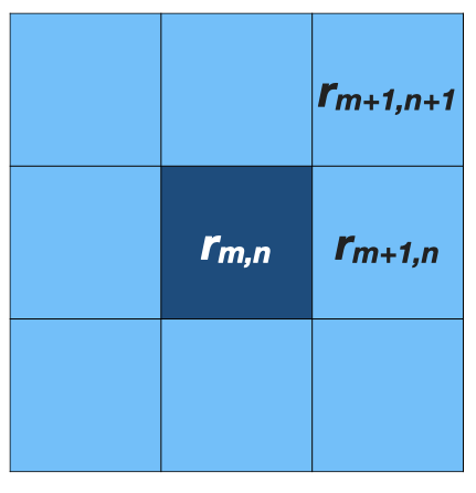 Each observation i is associated with a grid cell (\(m,n\)), so \(\tilde{r}i = r_{m,n}\).