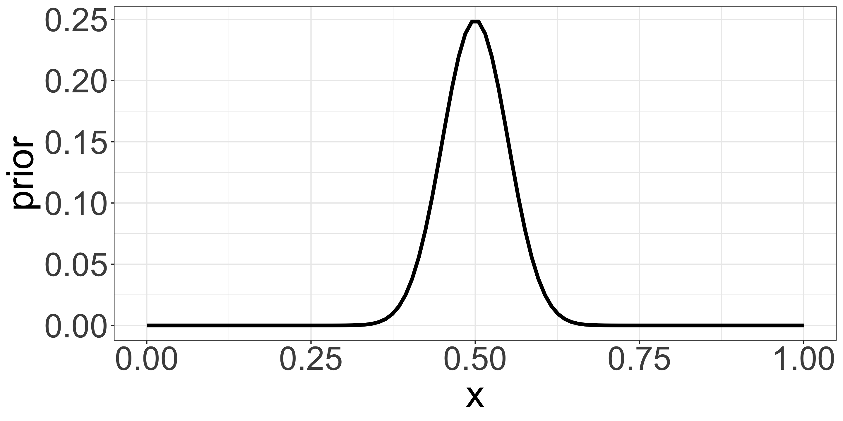 \(\mathrm{Prior} \propto p^{50} (1-p)^{50}\)