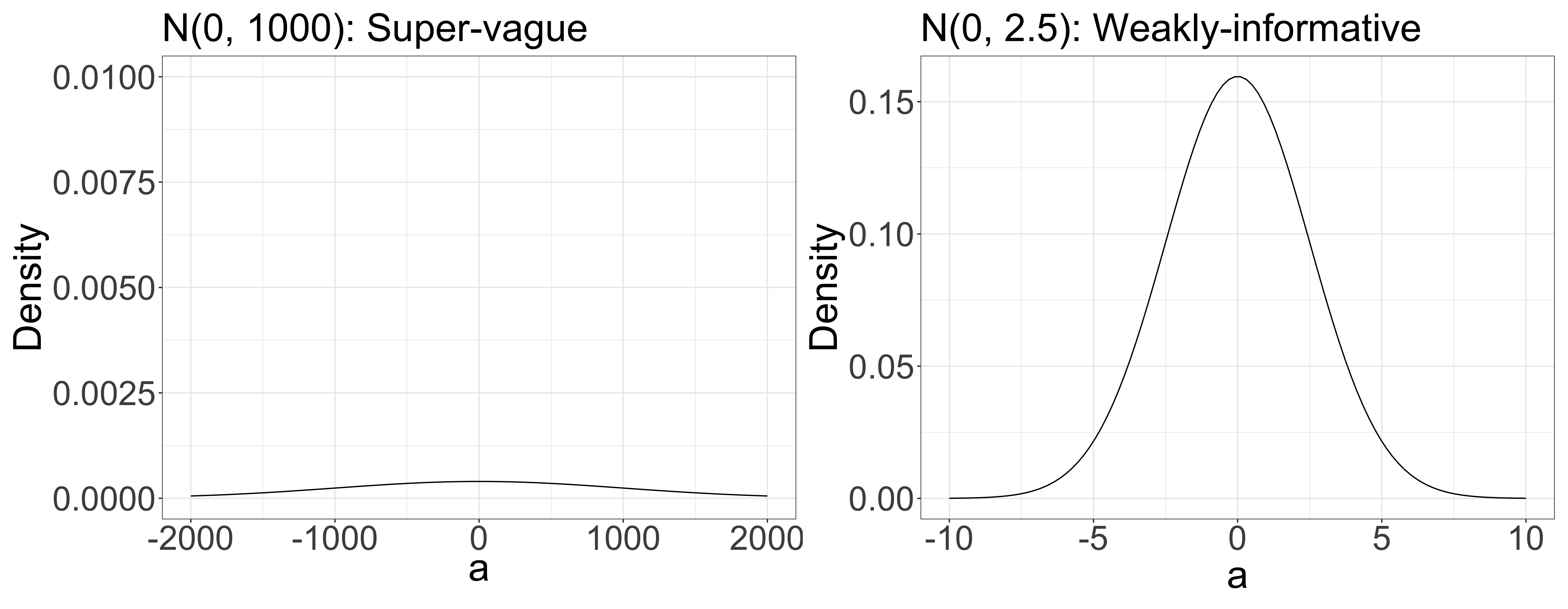 \(\mu \sim \mathcal{N}(0, 5)\): prior