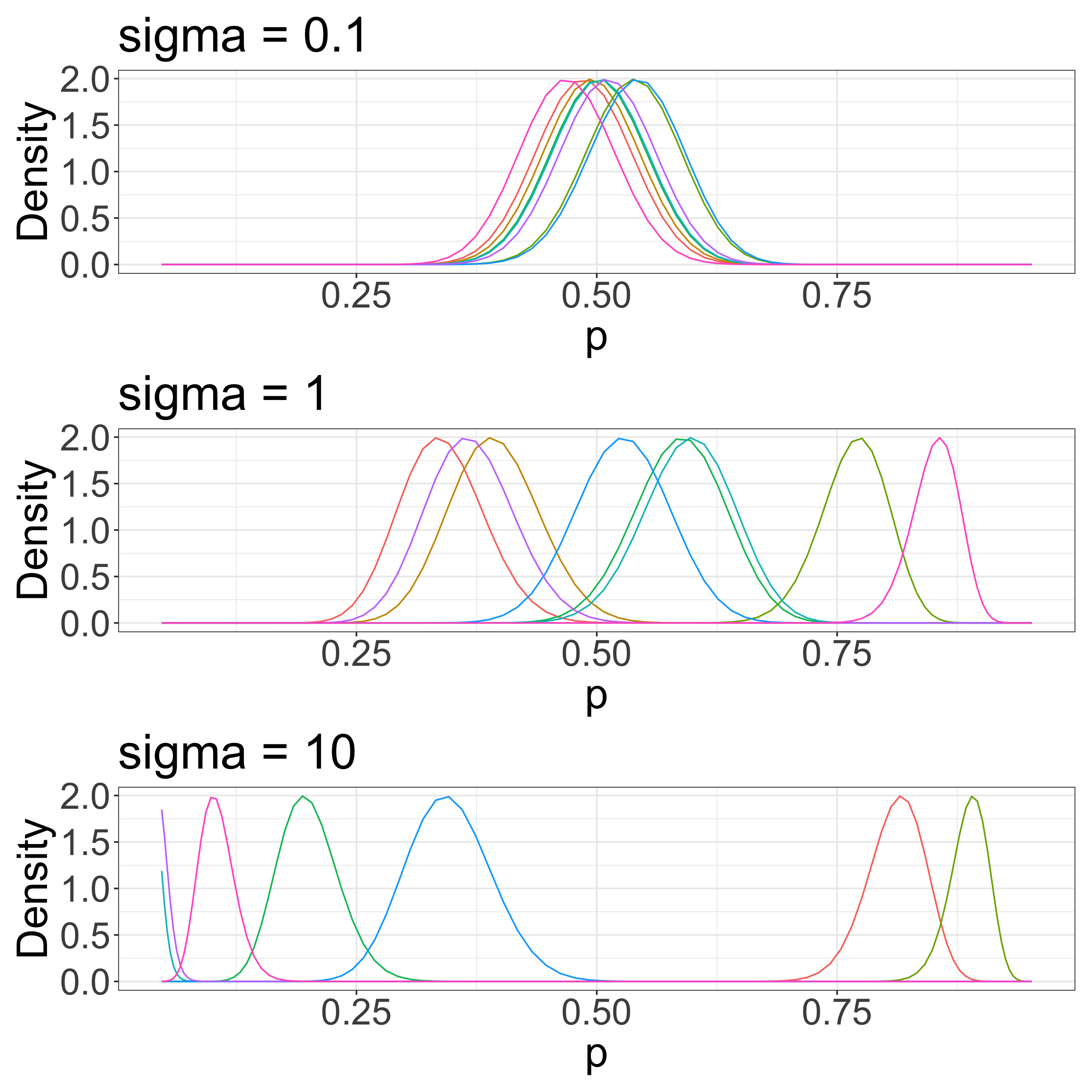 \(z_i \sim \mathcal{N}(\mu, \sigma)\) where \(z_i = \mathrm{logit}(p_i) = \mathrm{log}\frac{p_i}{1 - p_i}\)