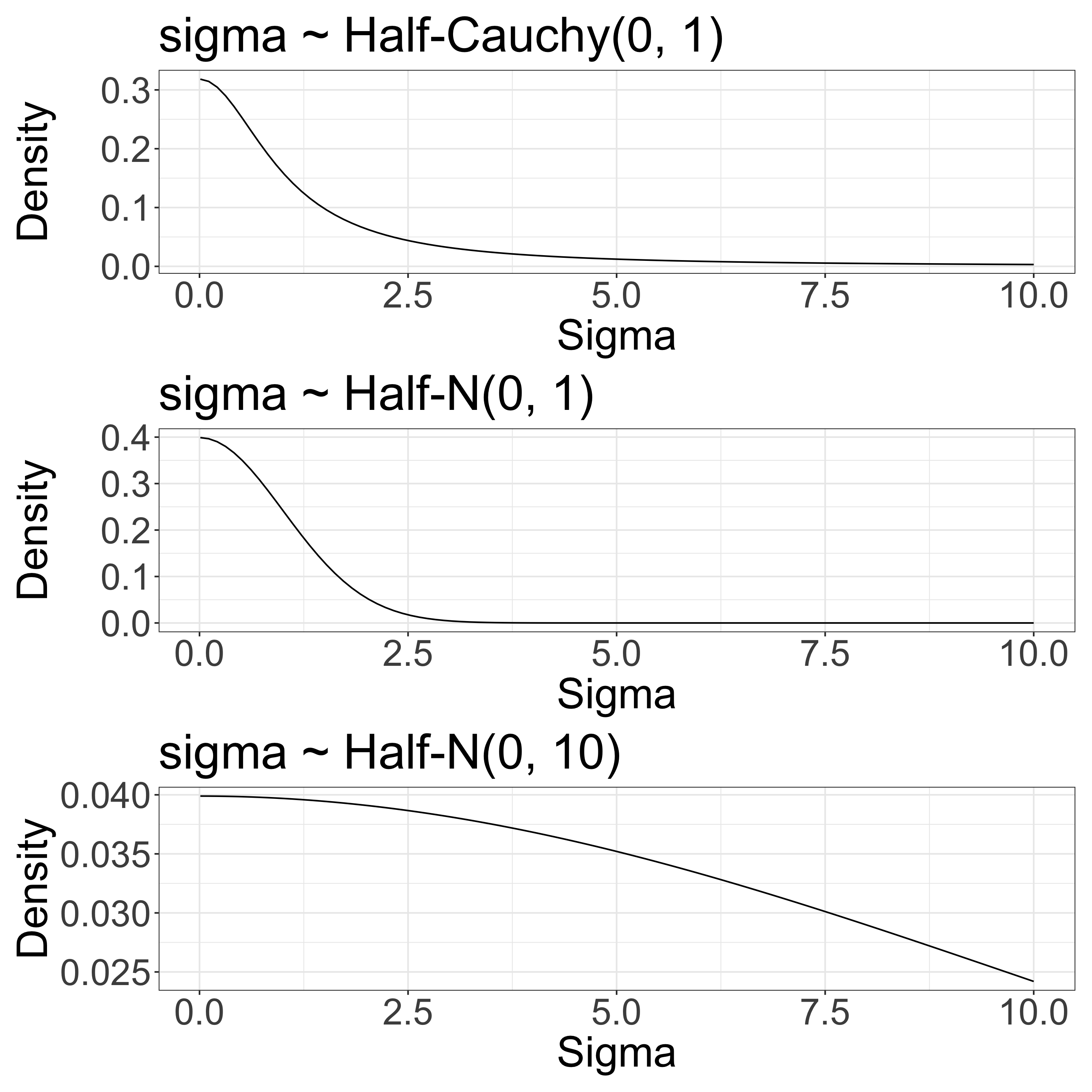 \(\sigma \sim \mathcal{N}(0, 1)\): prior