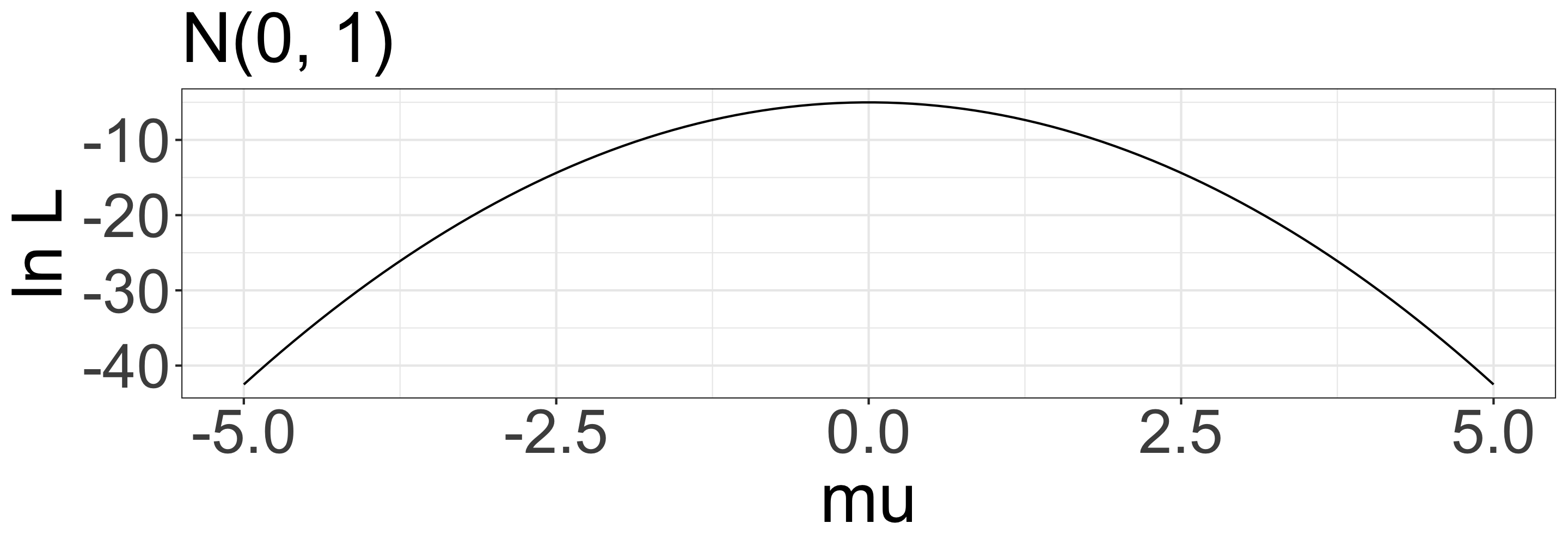 \(\mathrm{ln}\;L = \mathrm{ln}\;{}_5C_2 + 2\mathrm{ln}\;p + 3\mathrm{ln}(1-p)\)