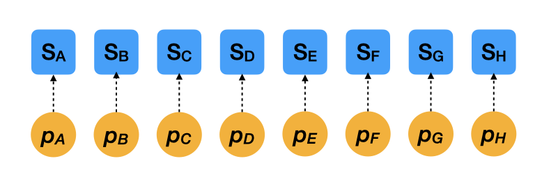 }\(s_{i,j} \sim \mathcal{B}(p_{i, j})\): likelihood