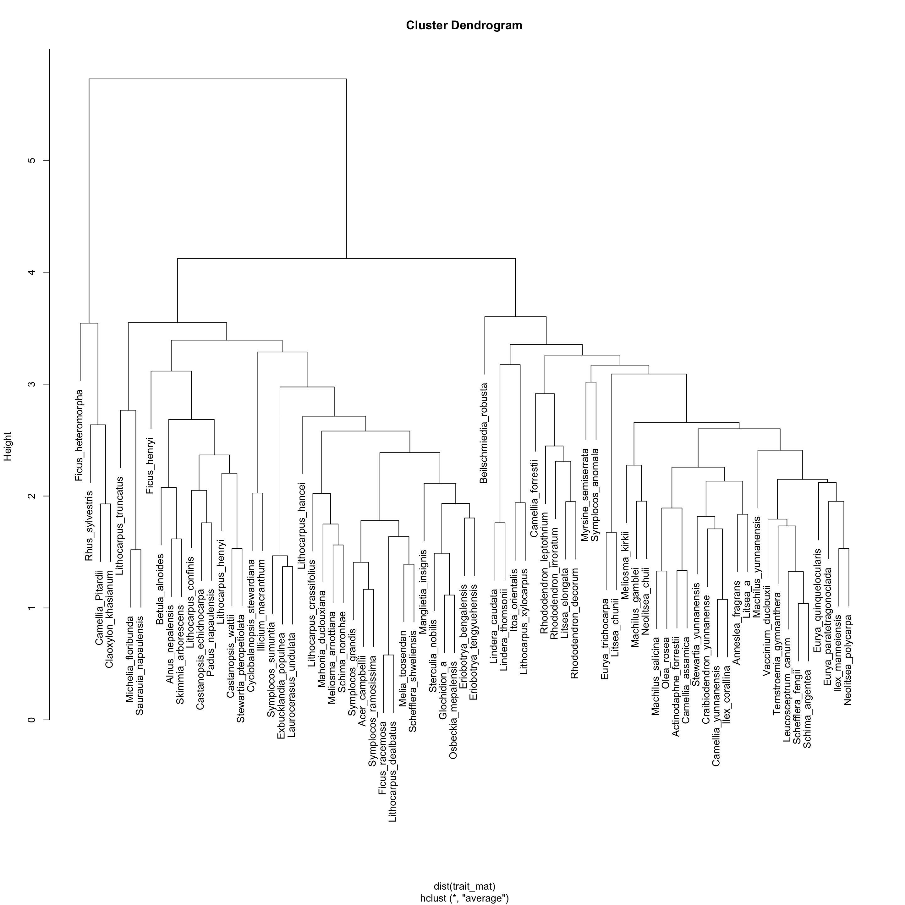 trait_dm[1:5, 1:5] Acer_campbellii Actinodaphne_forrestii Alnus_nepalensis