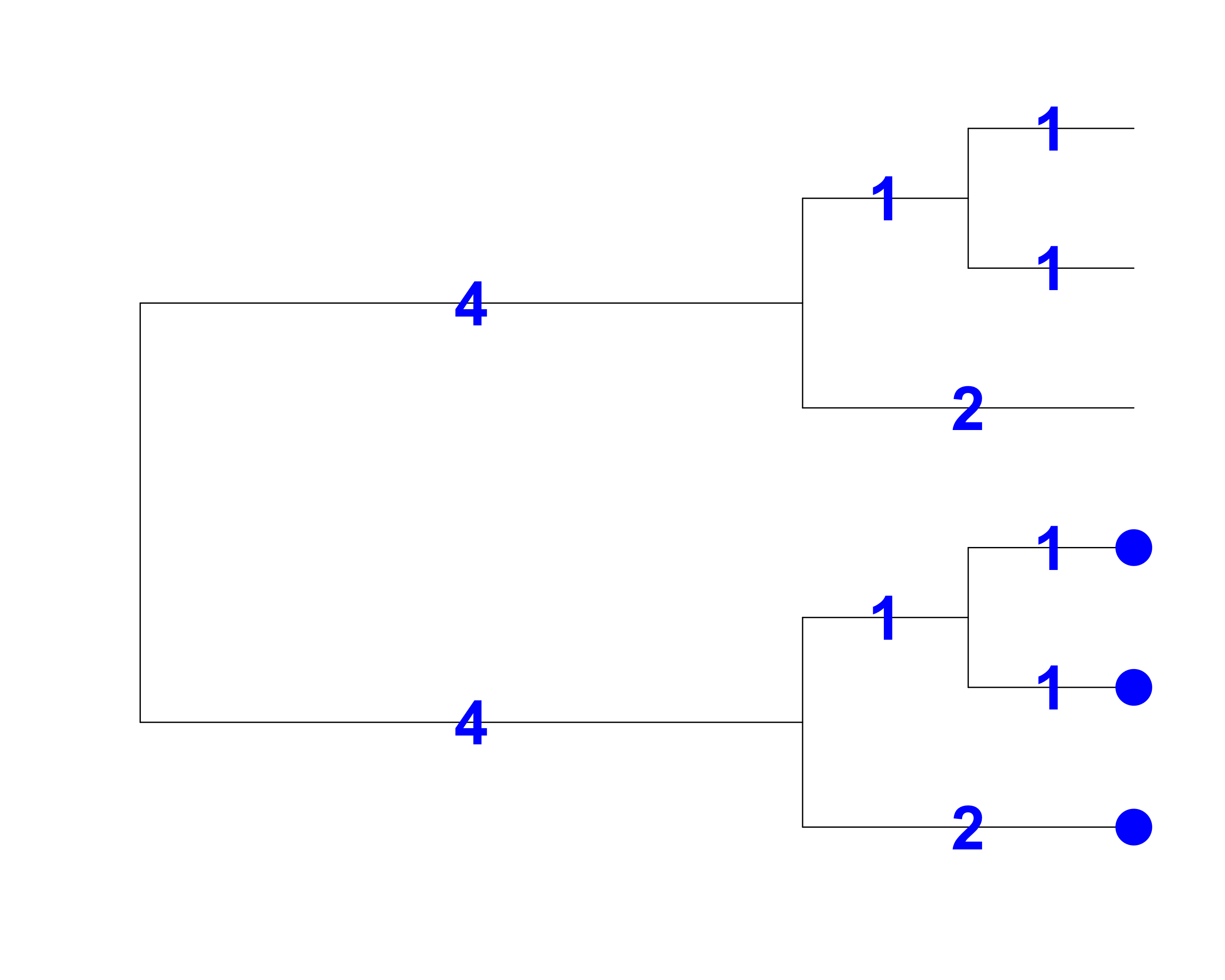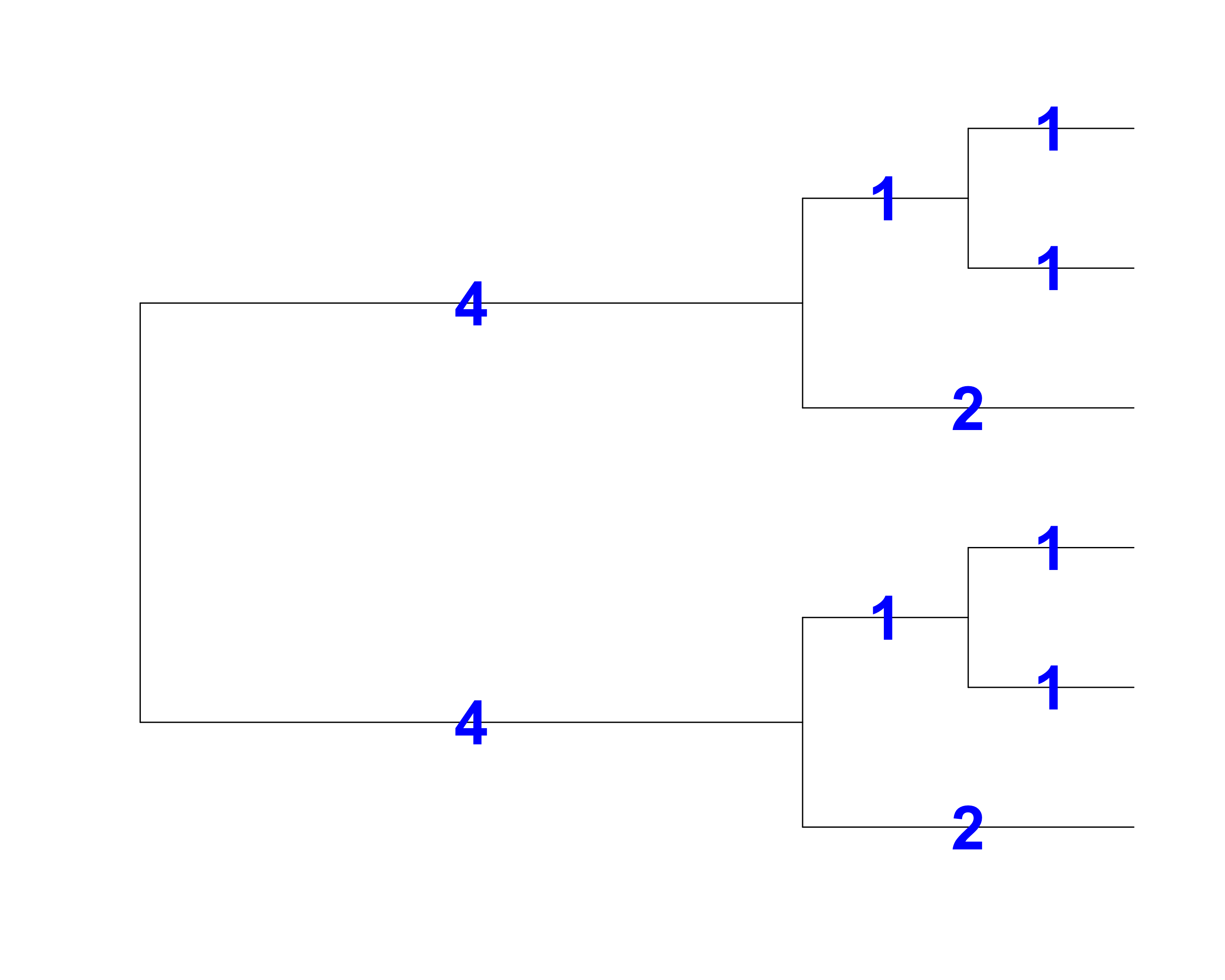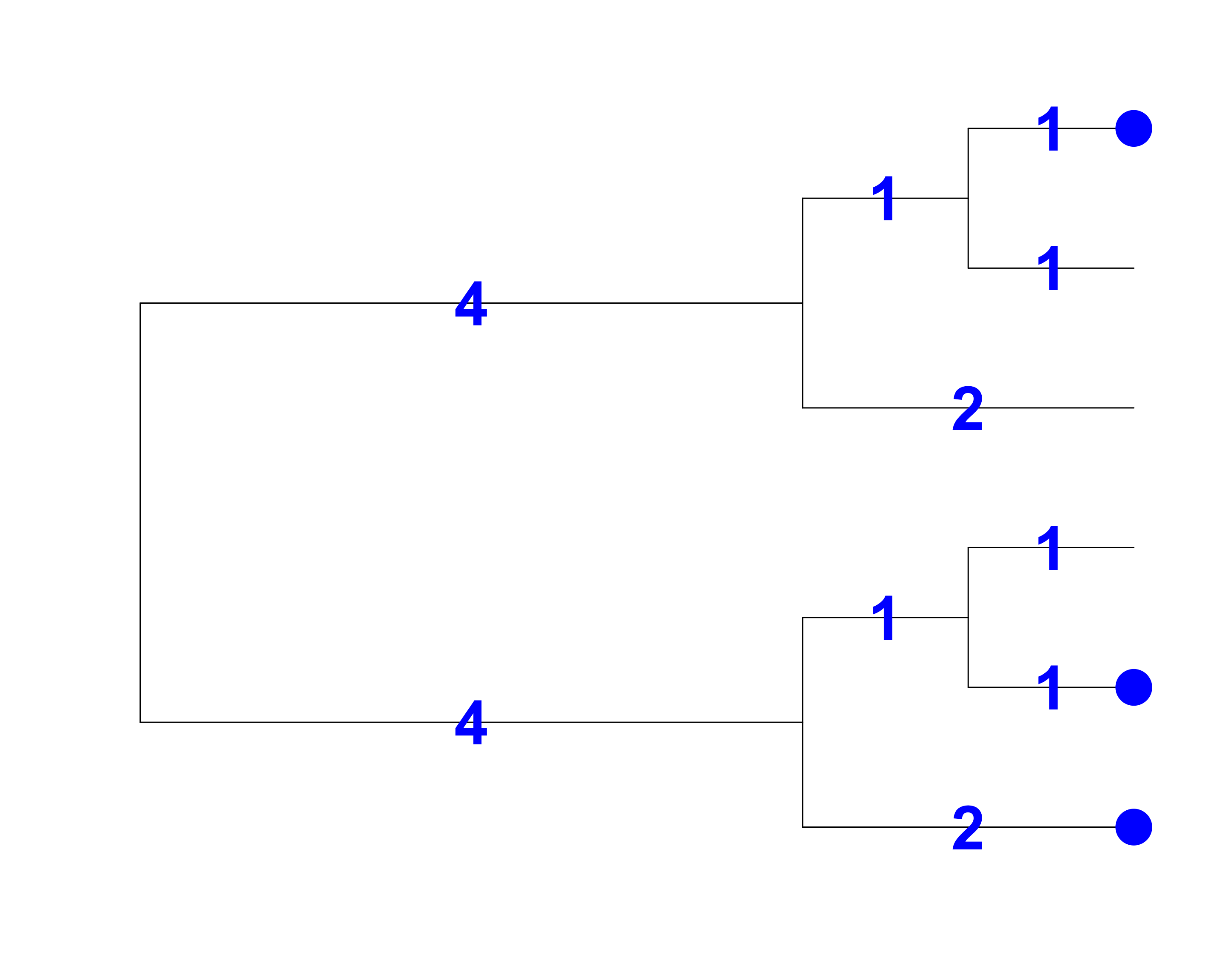 Let’s consider greatest possible mean pairwise node distance (MPD) for a community of 4 taxa
