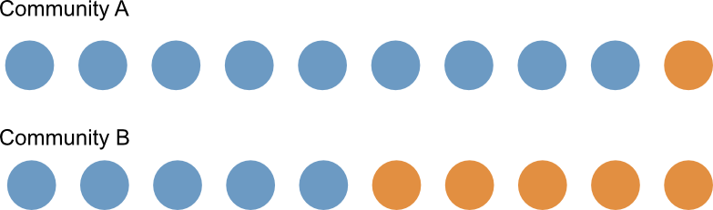 [1] \(MNTD = \frac{1}{n} \sum^n_i min \delta_{i,j} \; i \neq j\), where \(min \delta_{i, j}\) is the minimum distance between species i and all other species in the community.