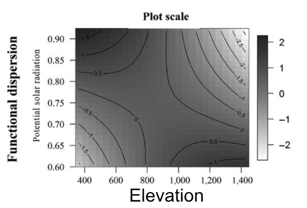 Functional dispersion in harsh environments (higher potential solar radiation)