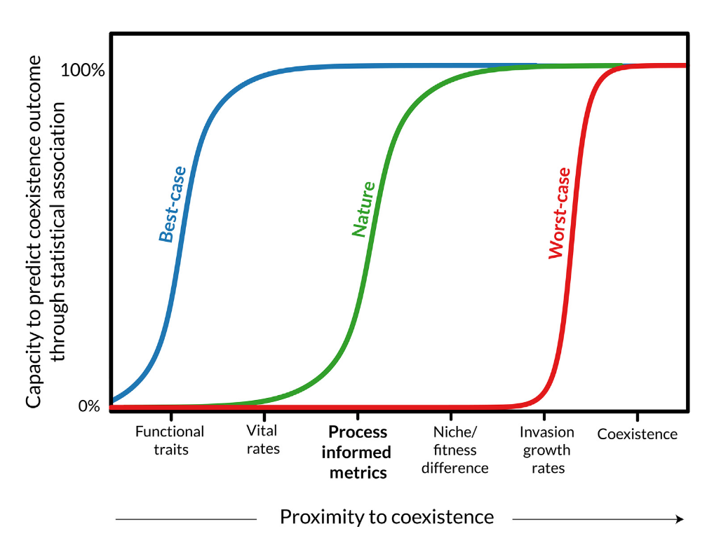 We may need metrics somewhere between functional traits and invasion growth rate (model parameter) to predict coexistence.