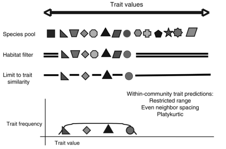 | Limiting similarity / Compitative exclusion | Overdispersion |